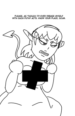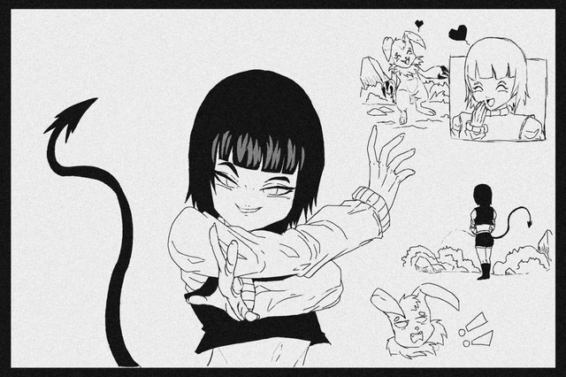 #armpits #bikini #black_and_white #collar #digital #english #girl #hairbun #horns #jacket #lock #monochrome #oc #pole #sketch #solo #swimsuit #tail #text #thighhighs #animemangagirl #original_character #digital_art #monster_girl #pole_dancer #pole_dancing #mesugaki