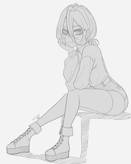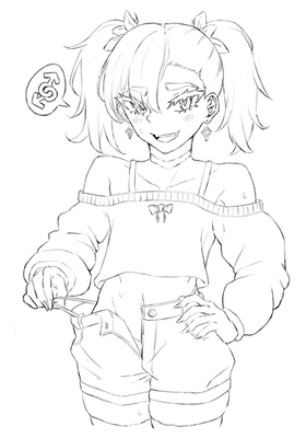 #digitalart #originalcharacter #sketch #ink #animestyle #blackandwhite #digital #girl #jacket #legs #monochrome #nailpolish #navel #oc #scales #shorts #snakegirl #twotonehair #whitebackground #shorthairgirl #digital_art #bobcut