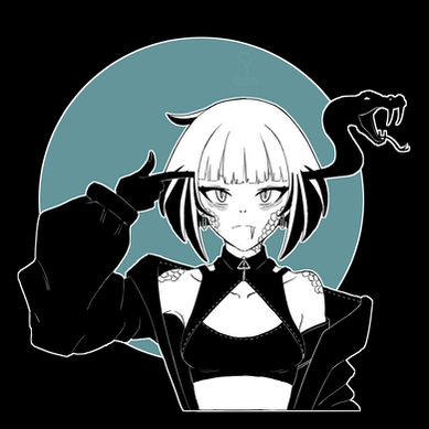#belly #digital #digitalart #digitalpainting #fang #forkedtongue #girl #hands #horns #monochrome #oc #purple #scales #shorthair #shorts #sleeves #snakegirl #solo #1girl #bobcut #bareshoulders #bellybutton #blackandwhite #originalcharacter #simplebackground #slender #smallbreasts #animemangagirl #lookingatviewer #turtlenecktop