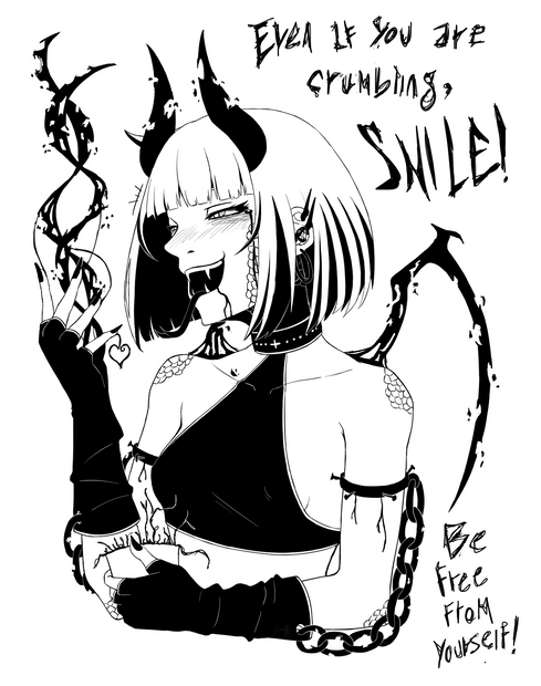 #angry #belly #cursing #digital #fangs #female #fetish #forkedtongue #fuckyou #girl #horns #jacket #monochrome #oc #scales #shorthair #sketch #solo #tongue #yandere #bobcut #blackandwhite #choker #corruption #digitalart #originalcharacter #smallbreasts #tubetop #underboob #twotonedhair