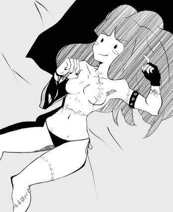 #belly #black_and_white #breasts #digital #ears #english #girl #monochrome #oc #panties #scales #selfie #sketch #sleeves #smile #solo #text #digital_art #snake_girl #short_hair #bob_cut #cellphone #hatching #sweater #animemangagirl #original_character #detached_sleeves #small_breasts #bare_shoulders #side_boob