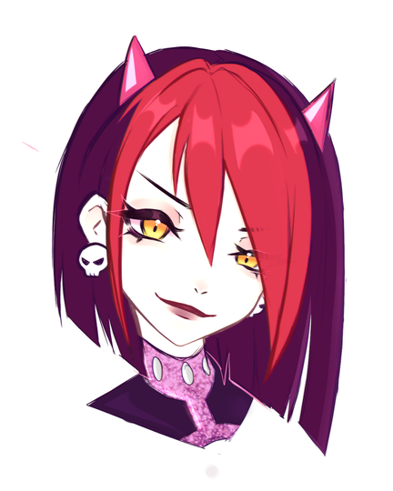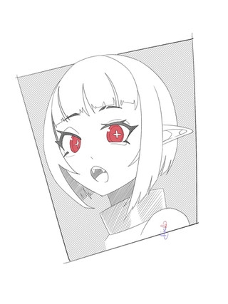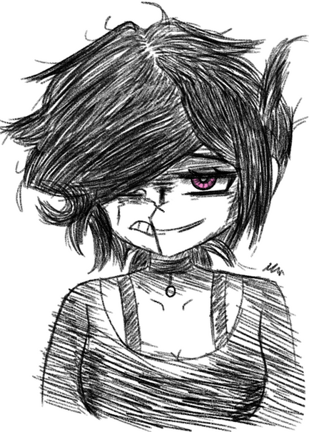 #ear #earring #eyelashes #girl #monochrome #original #piercing #practice #scars #sketch #solo #ahoge #red_eyes #short_hair #two_toned_hair #big_eyebrows #animemangagirl #white_background #simple_background
