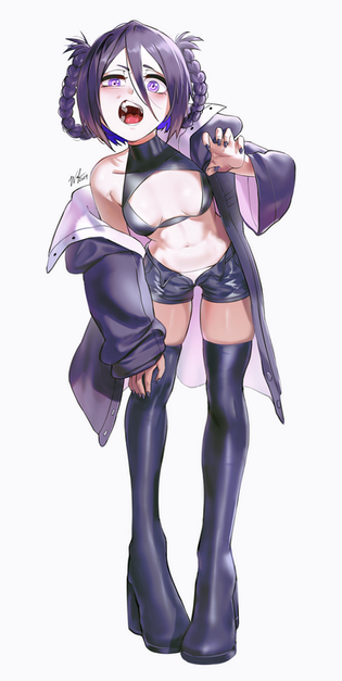 #belly #color #girl #gloves #latex #miniskirt #oc #snakegirl #digitalart #digitalpainting #originalcharacter #purpleeyes #thighhighs #animemangagirl #shorthairgirl #whitehairgirl