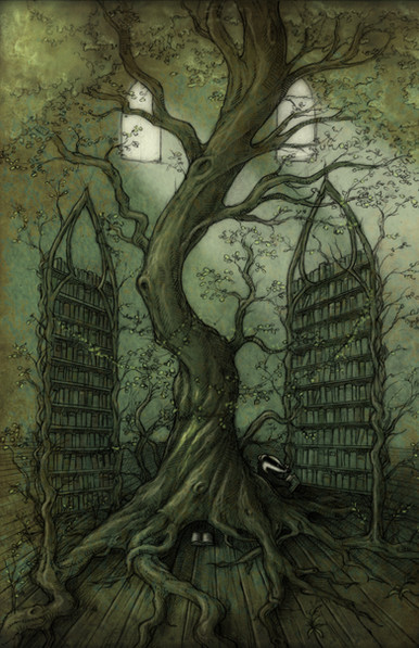 This has an awesome mystical quality and as I'm a fan of animals, trees, mystery and libraries, I think it's really lovely !!!