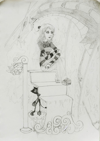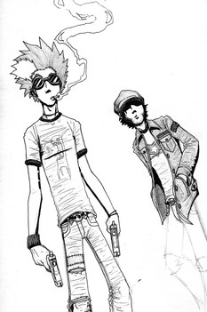this a panel from a very short story that i wrote very quickly, about a girl, a boy and his cat. the boy falls for the girl, who is deaf, and he immediately attempts to learn sign language so that he can tell her how he feels. the entire time, however, the girl is able to communicate with his cat through telepathy. from there, things get funny and cute and sappy as hell, as he is not too good at signing and the cat has to make up for it by translating his broken phrases telepathically. maybe i'll post the full story soon...maybe...Related content