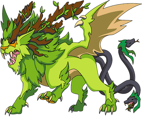 It's almost digimon-level cluttered)though it's at least chimera-like [sans goat head], mine chimera poke [not posted here] is so stylised it looks just like a fancy dragon