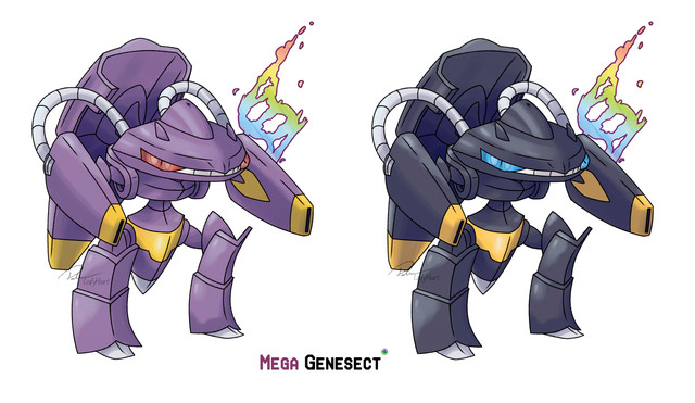 A concept of mega Genesect, sorry if its not as good as others but I tried.Genesect --> Holding Genesectite --> Mega Genesect still gets download