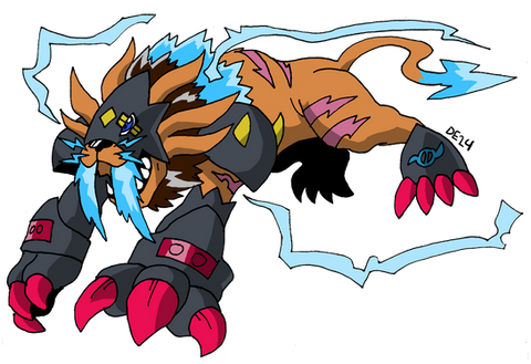MegaManectricmon is the embodiment of a thunderbolt unleashed upon the digital world. Its form crackles with untamed energy, and its presence sparks chaos wherever it roams. The digivolution process from Manectricmon was flawed, resulting in a dramatic shift in personality, rendering MegaManectricmon unable to be tamed by even the most skilled tamers.
