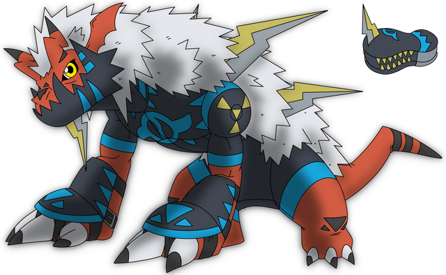 Driven by an insatiable buildup of electricity within its core, MegaManectricmon releases thunderbolts indiscriminately, creating a constant storm of electrical fury. This wild behavior makes it a formidable and unpredictable force in cyberspace, where it is often employed as a last line of defense to protect critical areas from intrusion.