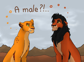 This idea is love. I adore how Zira is cleaning his paws while he speaks of his troubles; she would have been good to him, I think. Insta-fave!