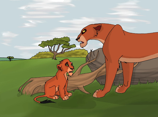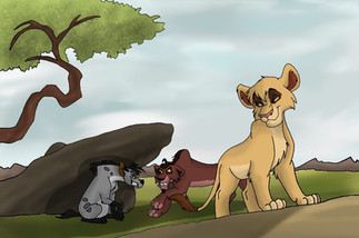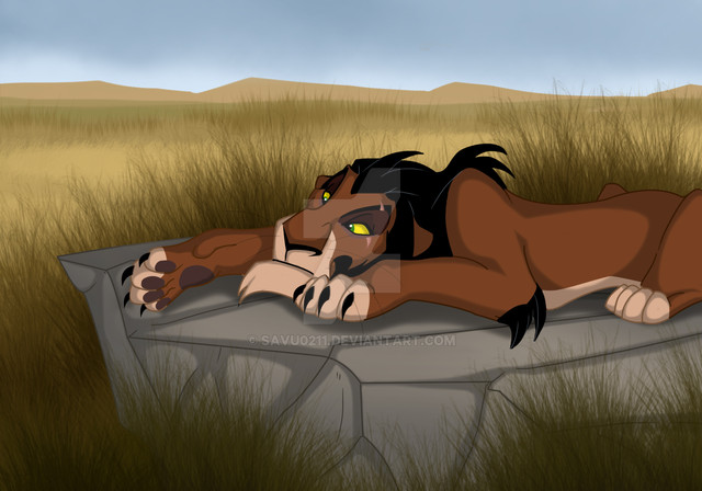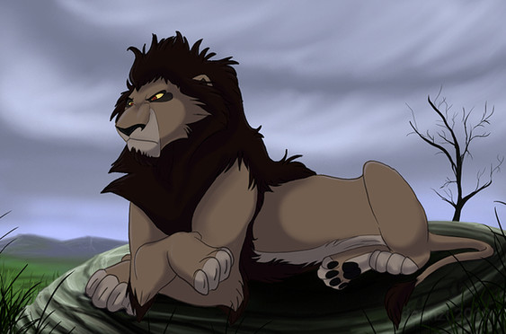 He looks the same way I'd imagine Scar looking when he was in his teens. Well w/ green eyes and a brighter coat. He looks so good compared to Disney's original design of him (: