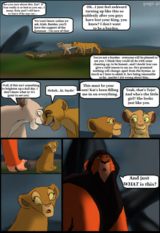 Oh, btw. I don't know if you know this but there is an upcoming kids show called the Lion Guard airing in 2015 and it'll feature Kion, the son of Simba and Nala and the younger brother of Kiara.: lionking.wikia.com/wiki/Kion Becuase of this, I like to sometimes imagine Kopa in your story as Kion and Tanabi as Kopa. Sorry that I do.