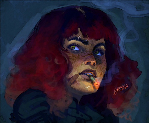 The cigarettes, the glowing eyes, freckles, and the incredible hand anatomy you have going on with your art are the reasons I love it so much. I'll follow ya until the end!