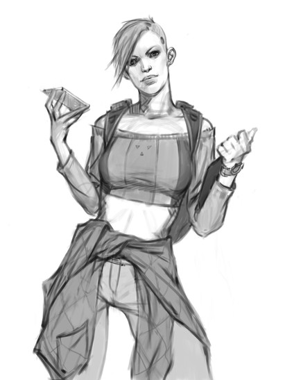 Love the red hair and the redhead 'tude...couldn't be more perfect. Was there a reference for this or was it from your head? Really evocative!