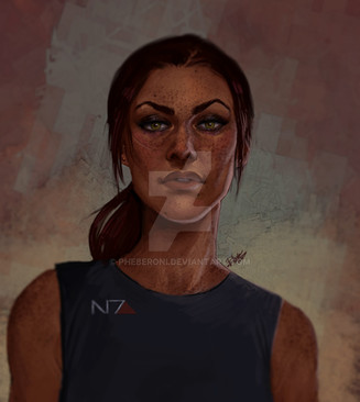 To put it in different words, your fem!Shep is undeniably beautiful, but she does not possess the kind of ethereal beauty of the stereotypical princess. Just by looking at this depiction you can say that she's tough, determined and never shies away from a fight. If we add that lovely-rendered unkempt hair and the perfect anatomical pose of her wiping her own sweat, I'd say it'd be hard to tell if this is a fantasy piece or a drawing of a real-life person! Β Β