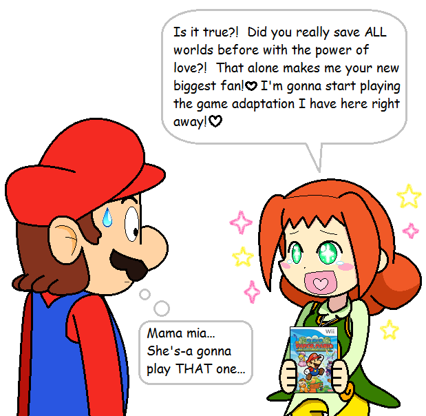 Head Referee Rosalina: You're opting out of the next football games??Referee Pauline: Not entirely. Just the ones where Team DK is participating in... last time, Donkey Kong made a scene by kidnapping me.