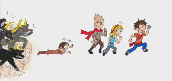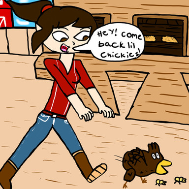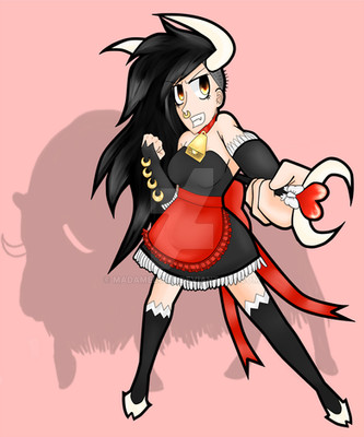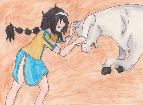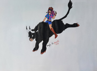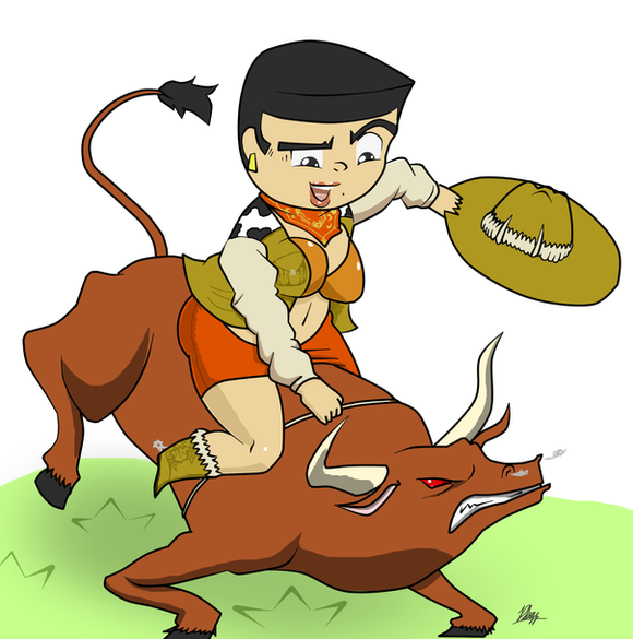 5th Task of , drawing the OC with an animal...Stella Burlone is quite the thrill-seeker, but the things she does for thrills can be questionable... such as getting chased by this bull that happens to be loose in the streets of Mariton...