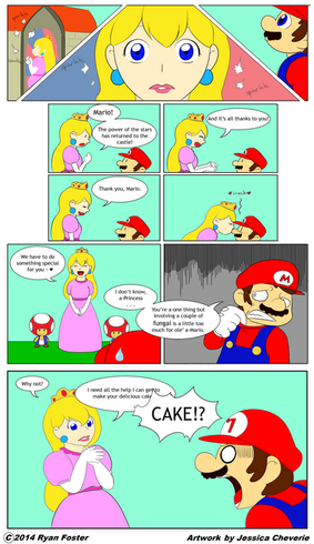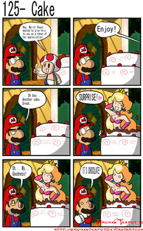 In retaliation for this theft, Princess Peach bakes a new cake and laces it with something...