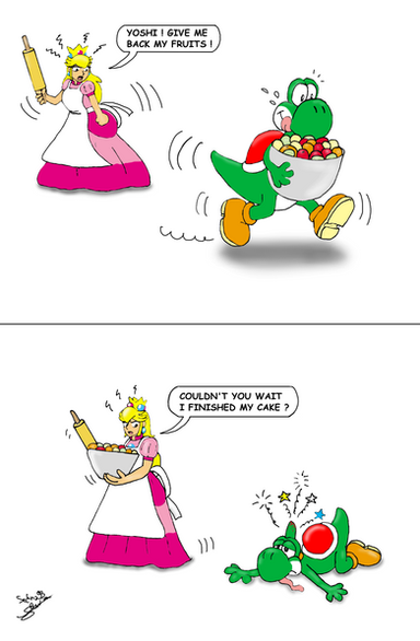 Peach, why you made poor Yoshi eat the cake with laxatives?