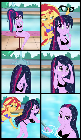 #beach #ironing #parody #comic #surfing #swimsuit #mylittleponyfriendshipismagic #old_master_q #twilightsparkle #equestriagirls #sunsetshimmer #lao_fu_zi #sci_twi_equestria_girls