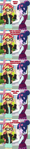 This is a parody of an Old Master Q (Lao Fu Zi) comic featuring Sunset Shimmer and Sci-TwiOriginal comic: