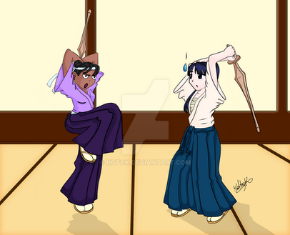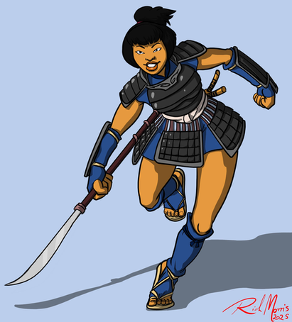 I like how you've shown them as a team here rather than fighting each other. Do the two styles compliment or conflict each other in teamwork? As always, wonderful detail and research on the historical armours. Given the heavier armour, I assume Ayaka's role here is primarily defensive?