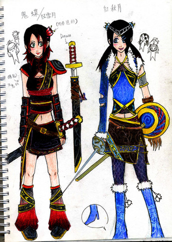 Team role: Ayame is considered to be in the front line (Ayaka is in the rear line)... this also gives me the excuse to depict them in their samurai/onna-bugeisha armor (though mainly for reenactment purposes)
