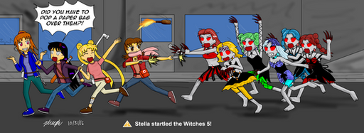 Sailors to the rescue! However, Rei/Sailor Mars with a gun worries me....