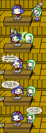 This is a parody of an Old Master Q (Lao Fu Zi) comic from OMQ Comics Book #261 pg. 54The comic features Sunset Shimmer and Adagio Dazzle.