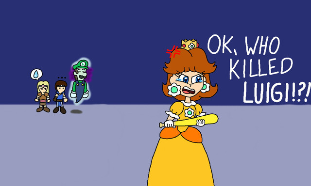 OH MY GOD! SHE'S GOT A GUN!!Actually this is what happened when Max did his 'searching' procedure on Princess Daisy as he did with Peach. It apparently rubbed her the wrong way causing her to knock Max down with a baseball bat and turn Sam's own revolver on him.