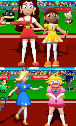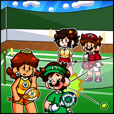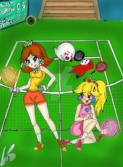 #princess #nintendo #comic #badminton #parody #peach #sports #tennis #old_master_q