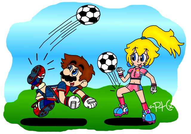 Since the Super Bowl is coming up, I thought it was time to work on 's request (I still have some other requests to work on...). He wanted me to draw Luigi and Daisy playing American Football. For me, that is very doable since I drew some pics related to American football. So here it is.It's Team Daisy vs. Team Luigi