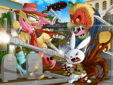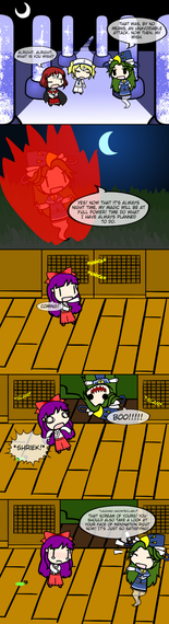 Just something random I thought about for a while.... Out of all the random ideas I thought of when dealing with something like the Flutterbat (aside from cliche anti-vampire weapons), it would be sending a zen monk (or in this case, a zen nun) to do the job... and look who was sent to stop the Flutterbat...EDIT: The comic now has shading (something I rarely do)