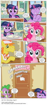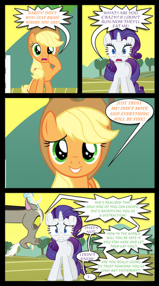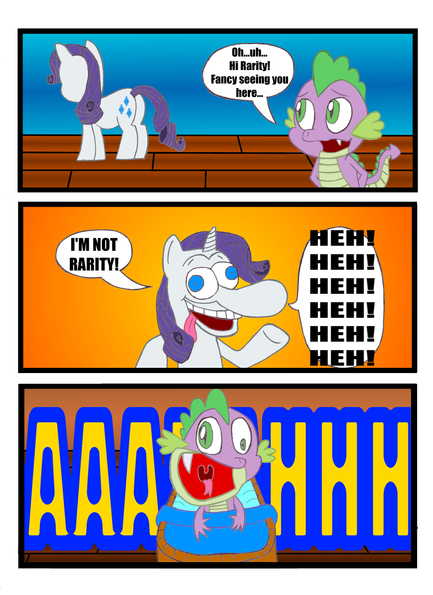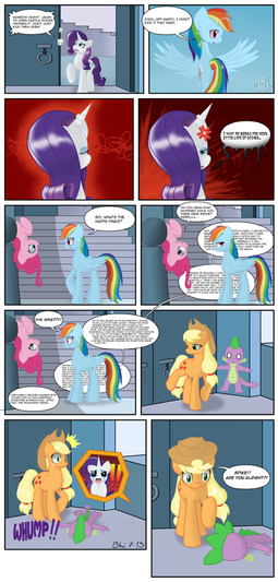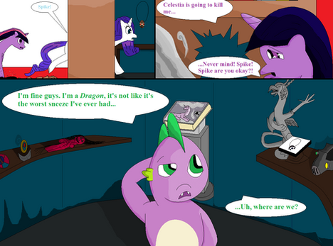 Page 7 of "The Direct Way"...How do I escape Rarity's magical hold on me as she tries to magically force those pills down my throat (these are the same pills that affect Daisy in "Tainted Drink")? After my escape, Twilight recovers from the shock and the two unicorns resume the search for me... guess where I'm hiding...