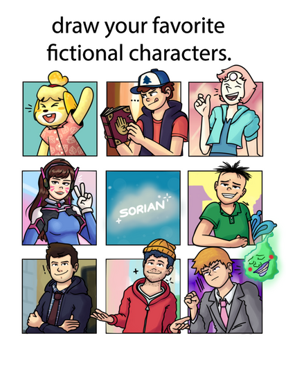 finally did one of them art memes where you fill it out with your favslook at all these dweebs who forced their way into my heart and fucked up my life by making me too emotionally attached to them