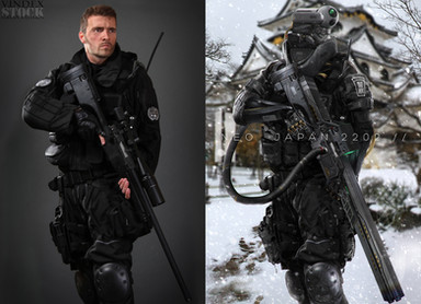 With the human to robot suit, it looks freakin sweet, theres no denying, but Im 'assuming' its because this artist is an amazing painter (digital). I dont know how he paint it I can only assume though typical painting processes, however I feel as if the picture wouldnt look nearly as epic without the ambiance of rain present. The rain on the other hand looks so realistic with the different stroked angles and contrast it baffles me what technique he would use to achieve that when I have studied other examples of 'how to's' that dont come close to this sort of quality. I really like how this artist paints rain.