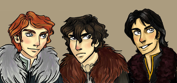 gale, peeta and finnick from the hunger games series.