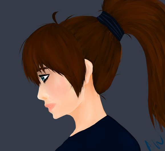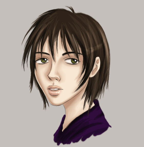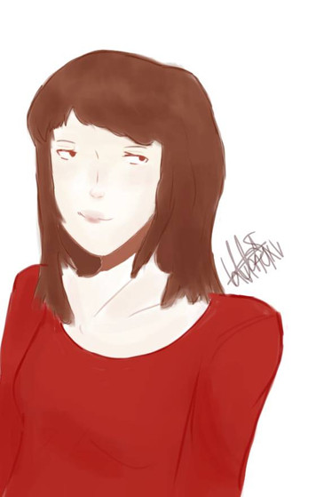Nice job on the coloring! I've always found it hard to do lineless coloring but you seem to have it down pat. My only suggestion would be a different color for the background. I think a cream or pale gold would go better with your character.