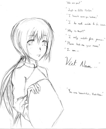 Just trying out my colouring. Looks rather sad. I realize I don't draw her conical hat a lot.Vietnam and APH belongs to Himaruya Hidekaz.