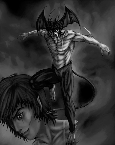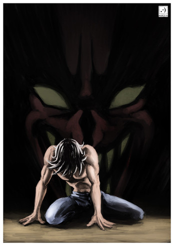 So, my friend asked me to do a picture of Hsi Wu (a demon/oni guy from Jackie Chan Adventures) looking into a mirror and seeing his "alter ego."I definitely wrestled with the composition on this piece: I was pretty sure of what I wanted to do, but I wasn't sure of how to actually execute it until finally settling on this version. Once I figured that bit out, everything else was much easier. I learned some new painting/rendering techniques along the way and generally had a fun time.