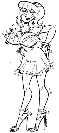 Thanks. I like the way her expression came out too. This was a pretty early drawing, and she's mostly a trace (gasp!) of a cartoon greeting card, greatly augmented. So I can only really take credit for her bustline, butt, clothing and expression, and only in the 2nd and 3rd panels. I should redraw this, if nothing more than to clean up the poor reproduction.