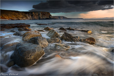 This beach situated on Quiberon Island gives a perfect view on the the different headland of the west side. I have found those triangular rocks and decided to make a simple view of this very large beach perspective.