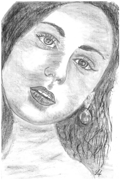 Pencil and charcoal portrait of Canan , based on this beautiful picture: (that I used on her permission).This is also a gift to her