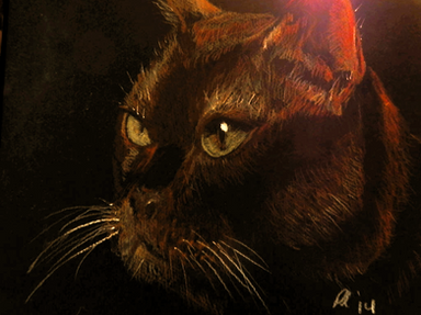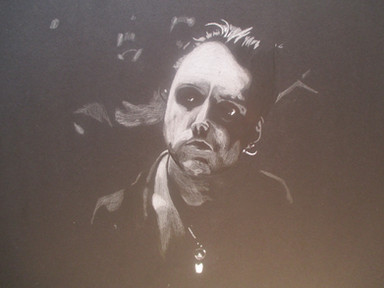 White chalk on black board. Based on the Riddick character (Vin Diesel), this mixed convicted killer/hero from the sci-fi action movies Pitch Black and Chronicles of Riddick.I read that a third movie from this series will come along one day.