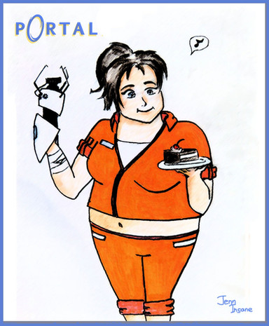 The cake is not a lie! and Chell has been tucking into this realistic cakeI NEED YOUR HELP PLEASE