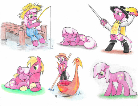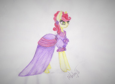 You did a really good job of drawing her and her outfit. It's really great to see some coloured pencil work in this fandom too. :3 I always get sad by Cheerliee being left out, but then Big Mac wasn't at the wedding either, so I like to pretend they were hanging out together instead.