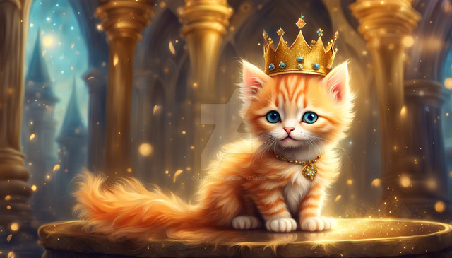 #ai #anthro #anthropomorphic #atmospheric #cat #characterconcept #characterdesign #conceptart #crown #cute #digitalart #dramaticlighting #exuberance #fantasy #golden #happiness #joy #king #smiling #steampunk #vividcolors #wallpaper #anthrocharacter #aiart