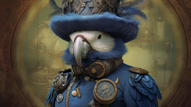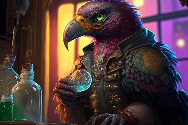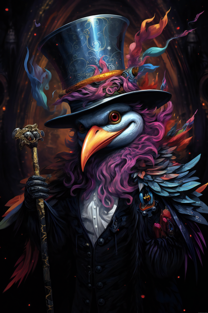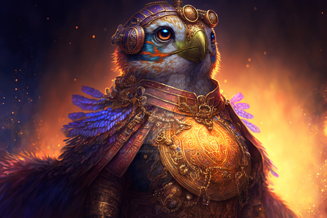 #ai #bird #chicken #fantasy #hen #purple #rooster #steampunk #yellow #aiart #anthropomorphic #characterconcept #characterdesign #vividcolors