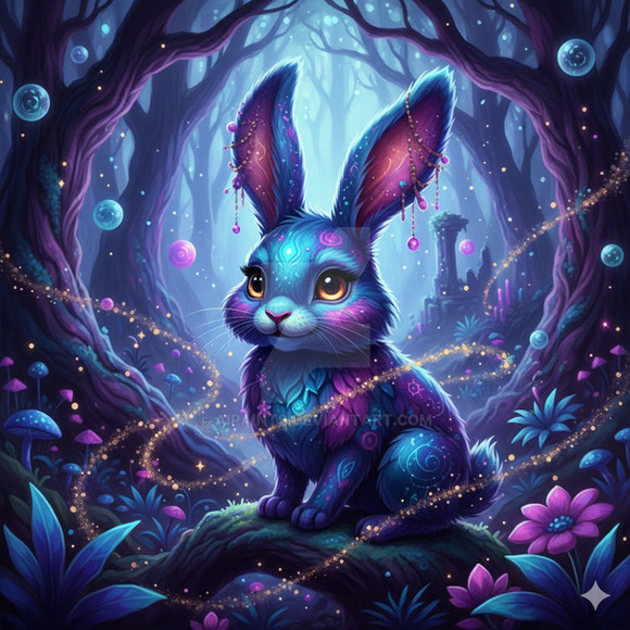 #ai #bunny #crystal #deepblue #fantasy #hare #rabbit #steampunk #aiart #characterconcept #characterdesign #vividcolors