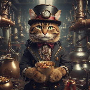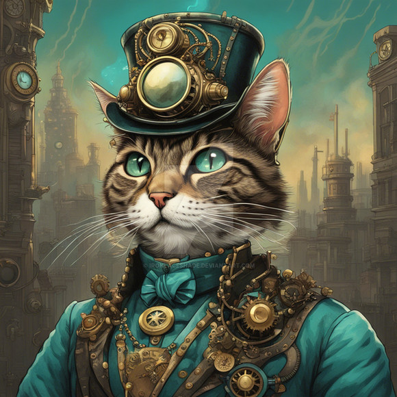 #ai #anthropomorphic #atmospheric #brown #cat #characterconcept #characterdesign #dim #dramaticlighting #fantasy #green #steampunk #turqoise #vividcolors #anthrocharacter #aiart